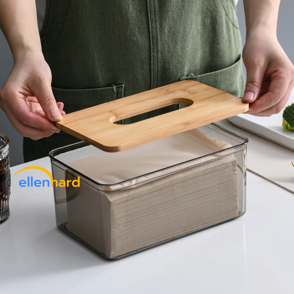 Detail Kotak Tisu Transparan Tutup Kayu Wooden Tissue Box