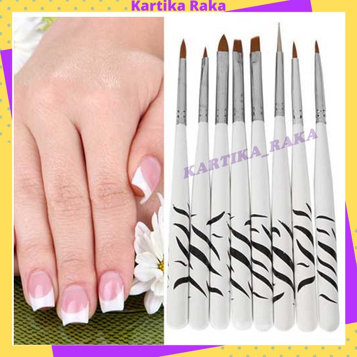 Kelengkapan Produk Rincian yang Anda dapatkan untuk pembelian produk ini: 8 x KR Kuas Kutek Kuku Nail Art Liner Drawing Brush Motif Zebra 8 Pcs