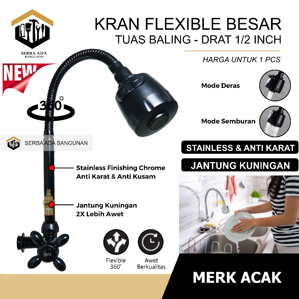Perlengkapan Rumah > Renovasi Rumah > Bak Cuci Piring & Kran Air > Kran Angsa Dapur Fleksibel / Flexible - 1/2 Inch - High Quality ROTASI 360 DERAJAT BERBAGAI MODEL TERLARIS TERMURAH