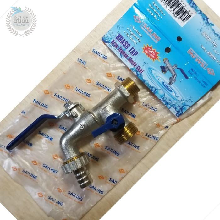 Kran Cabang Lurus Mesin Cuci / Kran Cabang Kuningan KRAN CABANG LURUS MESIN CUCI SAILING L4086 1/2"-3/4" KRAN cabang / Kran Double Model Bonceng