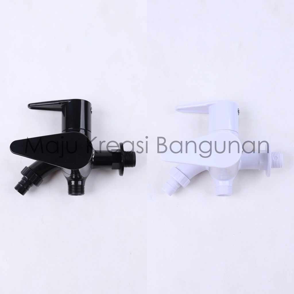 Perlengkapan Rumah > Renovasi Rumah > Bak Cuci Piring & Kran Air > Kran Cabang Shower New Soligen Keran Double S28 PVC Hitam Putih Kamar Mandi WC Toilet