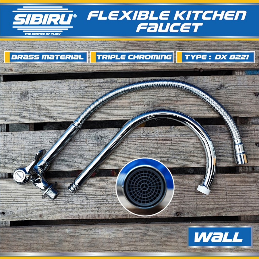 Perlengkapan Rumah > Renovasi Rumah > Bak Cuci Piring & Kran Air > Kran Keran Air Tembok Flexible Kuningan Original Sibiru Sink Wastafel Dapur DW 8221