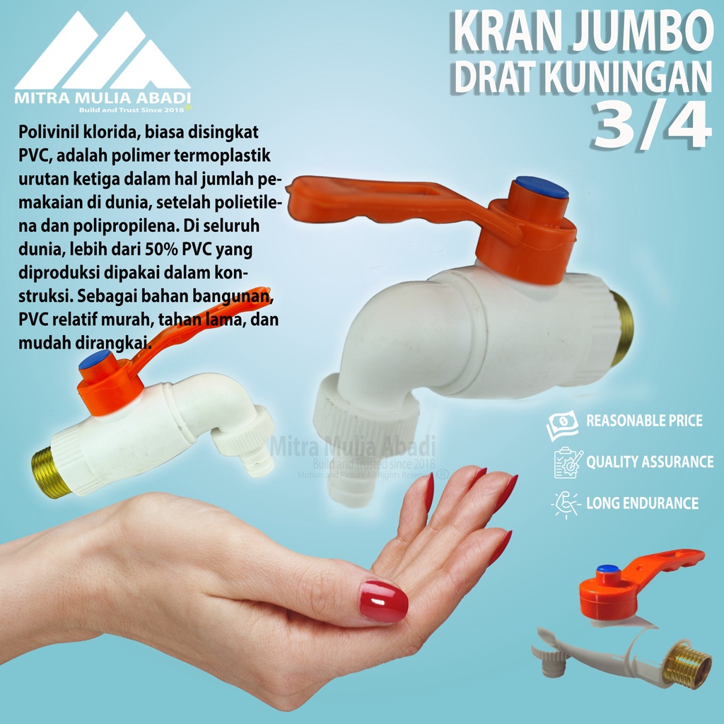 Special : ▪Model jumbo besar ▪︎BODY KRAN BAHAN TEBAL SUPER, BUKAN ABAL2 KALENG YG DIKETOK PECAH. KOKOH SOLID DAN TEBAL 😁👍 ▪Handle grip gelombang mengikuti jari tangan, enak dipegang! ▪Ada moncong selang taman, tinggal masukin selang langsung pakai ▪Warna eye catching, langsung kelihatan ▪Drat Kran SPECIAL SEKALI, terbuat dari bahan KUNINGAN, jadinya awet sekali, tahan lama, super wort it!! Ukuran : 3/4 inch Tuas : model engkol sesuai foto Warna : orange Bahan : PVC GOOD QUALITY -TEBAL & DRAT KUNINGAN