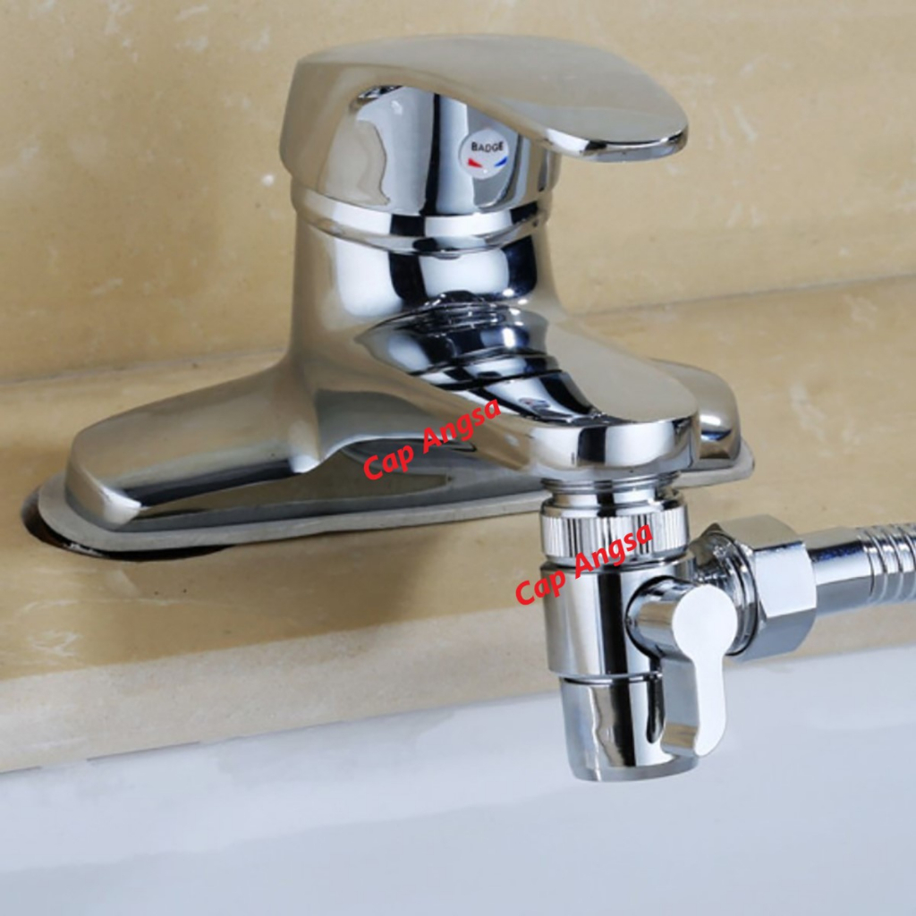 WASHBASIN SHAMPOO SINGLE-CUT VALVE WATER DEVIDER FAUCET SPLITER EXTENSION • One inlet and two outlets • Easy switching, easy operation • Suitable for Kitchen Sink, Bathtube, bathroom, laundry • Can be attached to shower, spray gun, washing machine etc