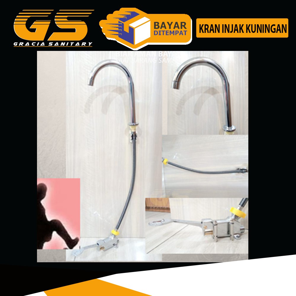 KERAN INJAK SOLUSI SEHAT UNTUK MELAWAN PANDEMI SAAT INI. PROSES TINGGAL INJAK KELUAR AIR. Kran wastafel injak *Dudukan kran ke lantai *Bahan kuningan di Lapis Chrome Tebal *Kuat ,Anti Karat ,Tahan Keropos *Tinggi dr meja ke kran 23 cm *bibir pancuran ke air 15 cm *Drat pemasangan 1/2" *menyalakan air dengan Model di injak *Includ pedal kran,leher spoud keluar air,fleksible 50 cm x 2