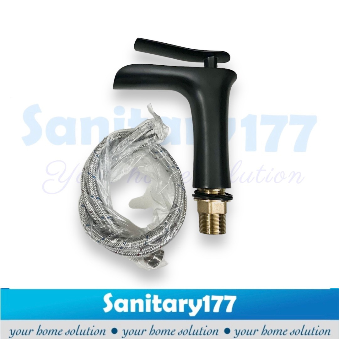 Perlengkapan Rumah > Renovasi Rumah > Bak Cuci Piring & Kran Air > Kran wastafel kuningan HITAM air terjun -keran air cuci tangan brass faucet mixer washtafel black 20 30 elite elegan slim langsing jumbo