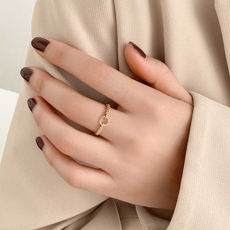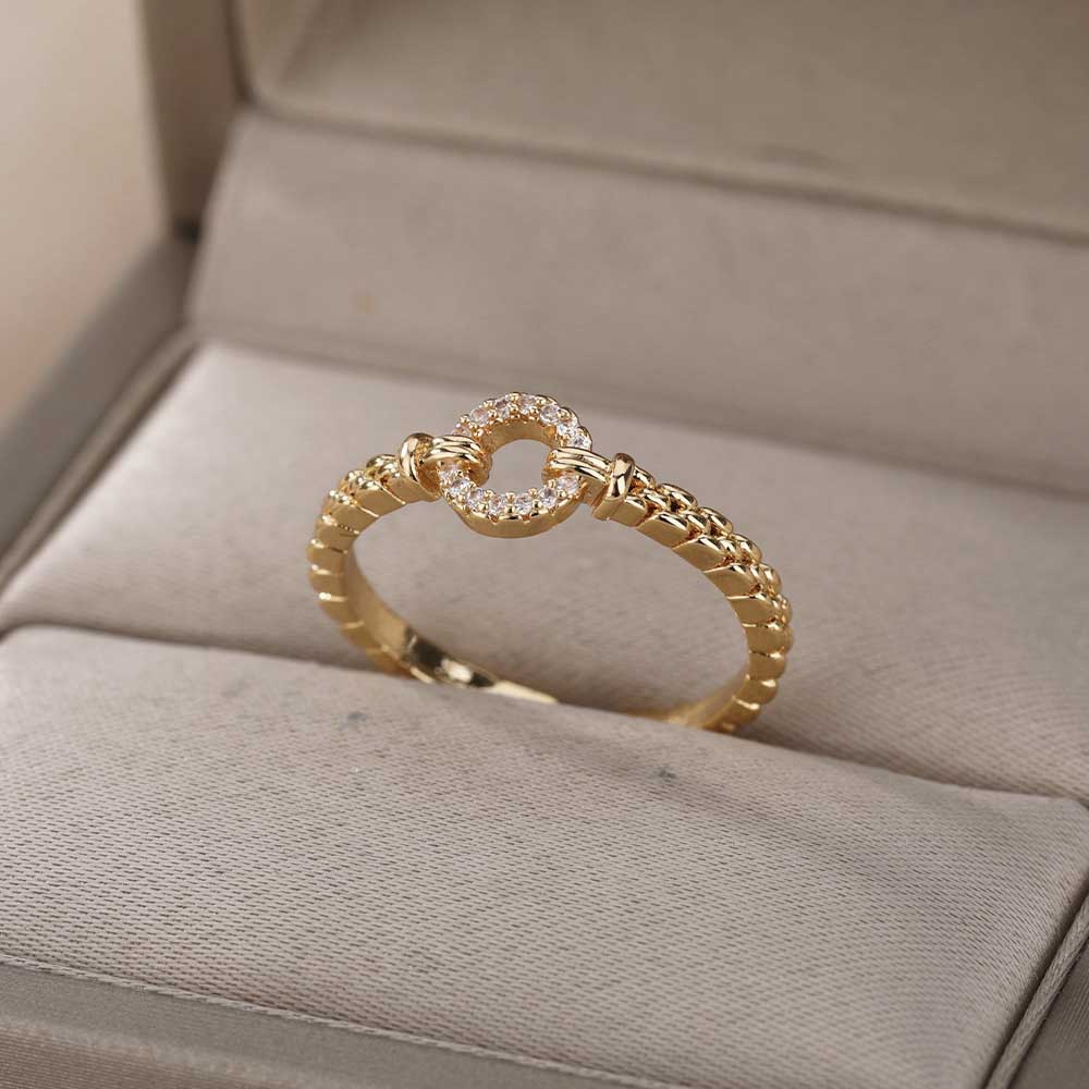 Detail Kreatif Berbentuk O Berlian Kristal Cincin Emas Baja Titanium Wanita Fashion Perhiasan Pernikahan Pertunangan Rings Adjustable Size