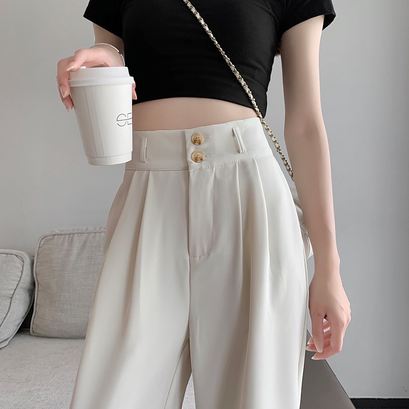 Detail Krem Highwaist Kulot Loose Celana Panjang Wanita Korea Style Kekinian