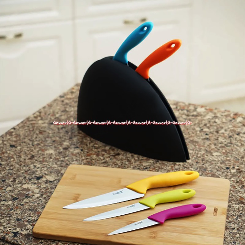 Pisau dengan desain dan warna menarik ini akan memberikan tampilan bernuansa cerah pada dapur Anda. Warna yang berbeda pada masing-masing pisau memudahkan Anda untuk menggunakan pisau ini untuk keperluan berbeda. Kris Chef Rainbow Set Pisau terdiri dari 1 pisau koki 7.5 Inci, 1 pisau roti 8 Inci, 1 pisau koki 6 Inci, 1 pisau sehari-hari 5 Inci, 1 pisau tulang 3.5 Inci, dan cover tatakan plastik untuk menyimpan pisau.