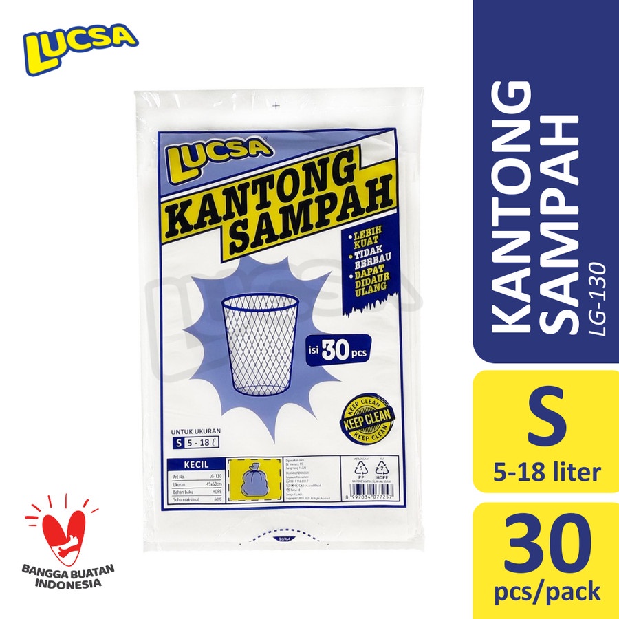 Type : LG-130-S Merek : Lucsa Kapasitas : 5-18Liter Ukuran (PxL) : 60x45cm Size : S (Small) Ketebalan plastik : 0.02 mm Jenis plastik : HDPE Original Isi : 30pcs/pack Warna : Putih (khusus size S)