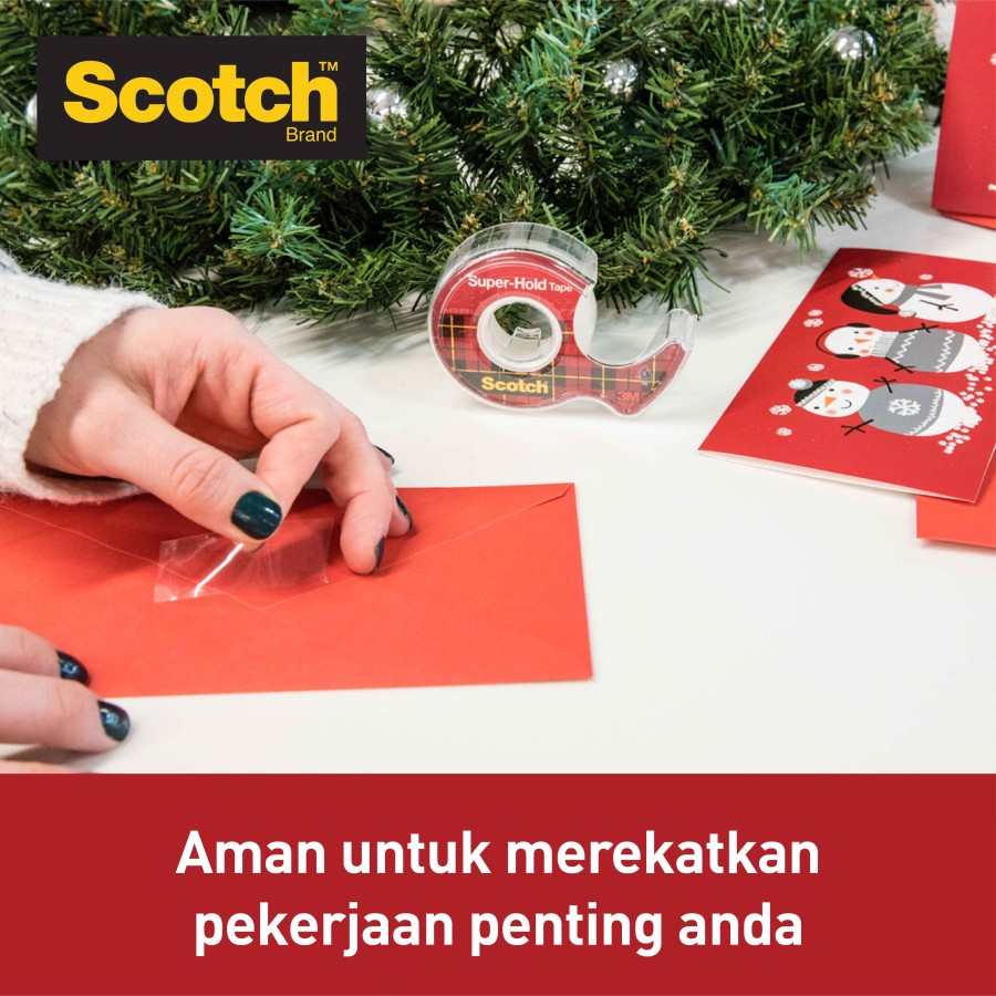 Scotch® Super-Hold Tape merupakan varian pita perekat kami yang paling aman dan kuat, pita perekat inovatif ini menawarkan ikatan yang lebih kuat daripada pita perekat transparan standar kami. • Ukuran : 3/4 x 650 inch • Perekat 50% lebih banyak • Aman untuk pekerjaan penting Anda • Memberikan ikatan yang kuat pada kontak • Menghilang ketika direkatkan • Aman untuk digunakan pada foto Anda • Formula tahan lembab untuk ikatan yang andal • Ideal untuk digunakan di rumah, kantor dan ruang kelas • Kompatibel didunakan dengan spidol permanen untuk pelabelan yang nyaman