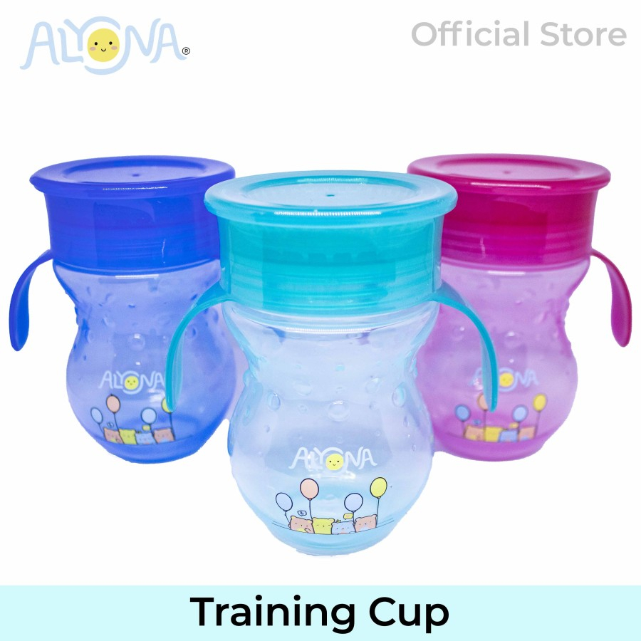 Alyona Training Cup membantu si kecil untuk transisi dari dot ke gelas minum biasa. Dengan Sipper Cup si kecil seperti minum di gelas yang tidak dapat tumpah, karena terdapat katup silicone dimana air baru akan keluar jika dihisap. Dilengkapi dengan fitur 360°, layaknya gelas Sipper Cup ini dapat diminum dari segala arah. Juga dilengkapi dengan tutup agar cup selalu higienis.