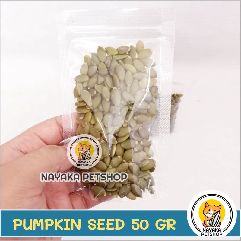 Kuaci Hijau Kupas Tanpa Kulit 50 gr Camilan Hamster Pumpkin Seed Biji Labu Cemilan Snack Hewan Ekstra Food