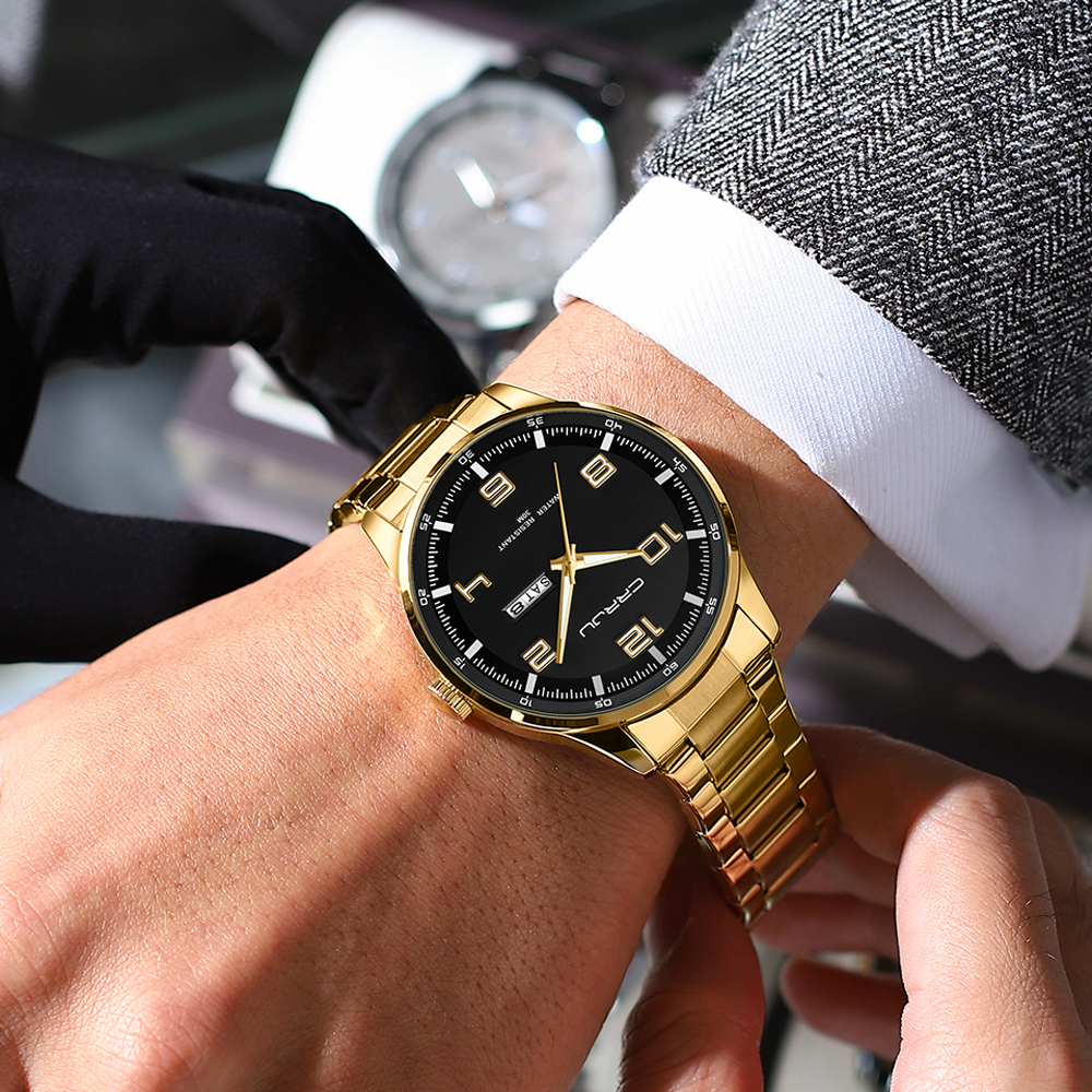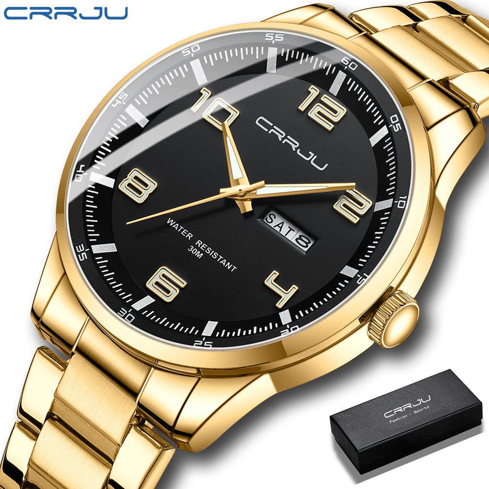Jam Tangan > Jam Tangan Pria > Analog > [KUALITAS IMPOR] ✅COD CRRJU Jam Tangan Pria Anti Air Original Luxury Stainless Steel(Free GIft Box) Jam Tangan Laki Laki Bercahaya Kalender Fashion Business Sport Men Watch Analog