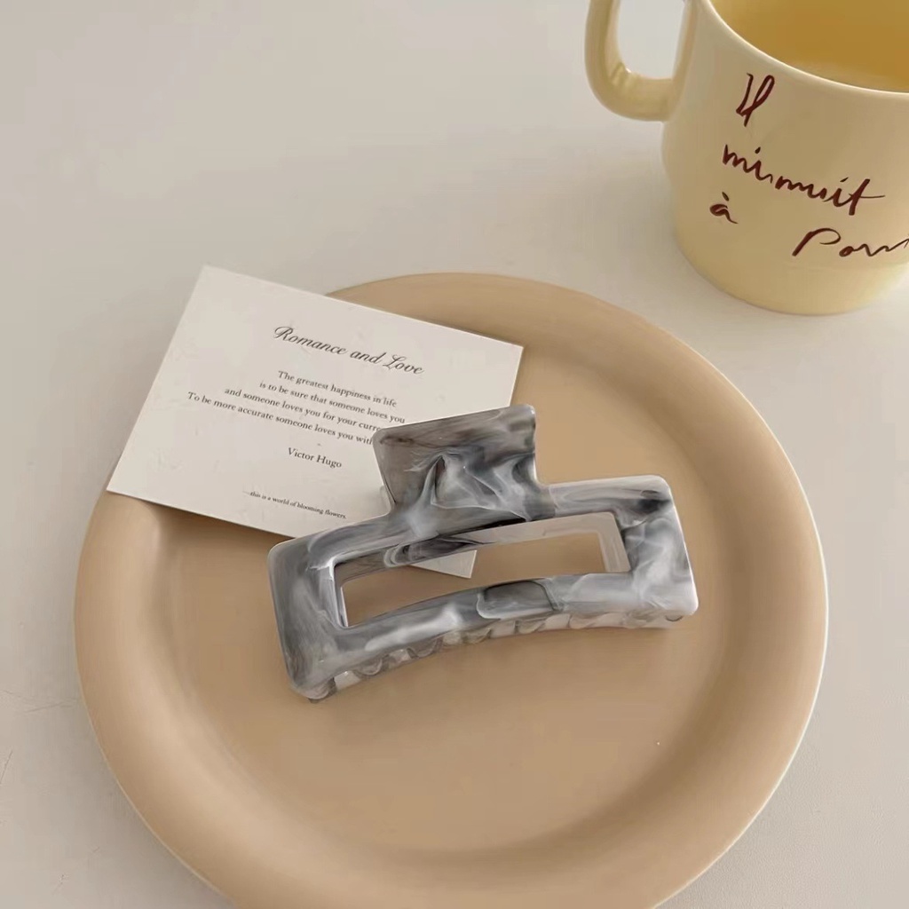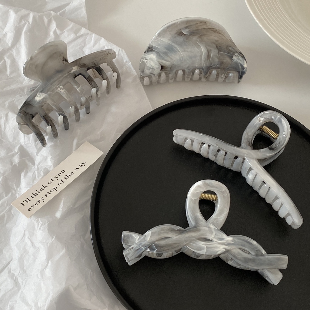 Nama: Klip rambut gaya Cina tinta hitam dan putih berkualitas tinggi klip hiu gaya abu-abu sederhana sendok belakang gaya