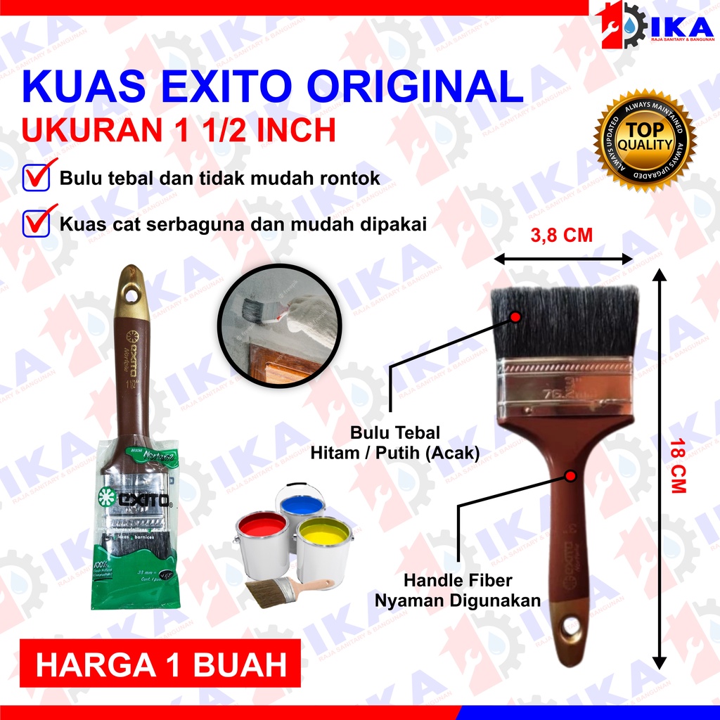 Detail Kuas cat bulu hitam putih 1,5" 2" 2,5" 3" 4" inch kuas cat tembok EXITO 100% ASLI murah bagus bulu lembut tebal