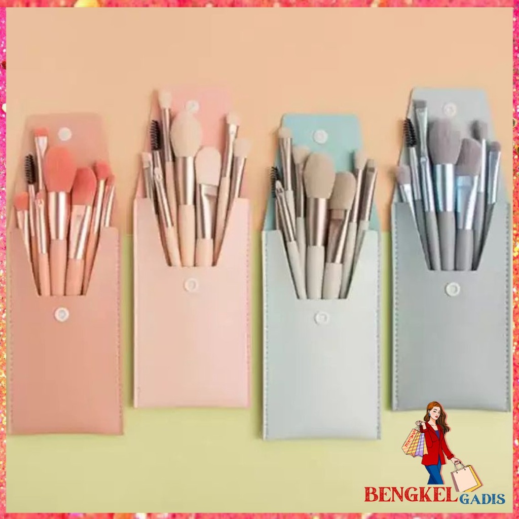 Bahan : Bulu Sintetis Halus Terdiri dari 8 Kuas : -Blush Brush -Foundation Brush -Eye Shadow Brush -Eye Smudge Brush -Nasal Shadow Brush -Brow Brush -Lip Brush -Eyelash Co