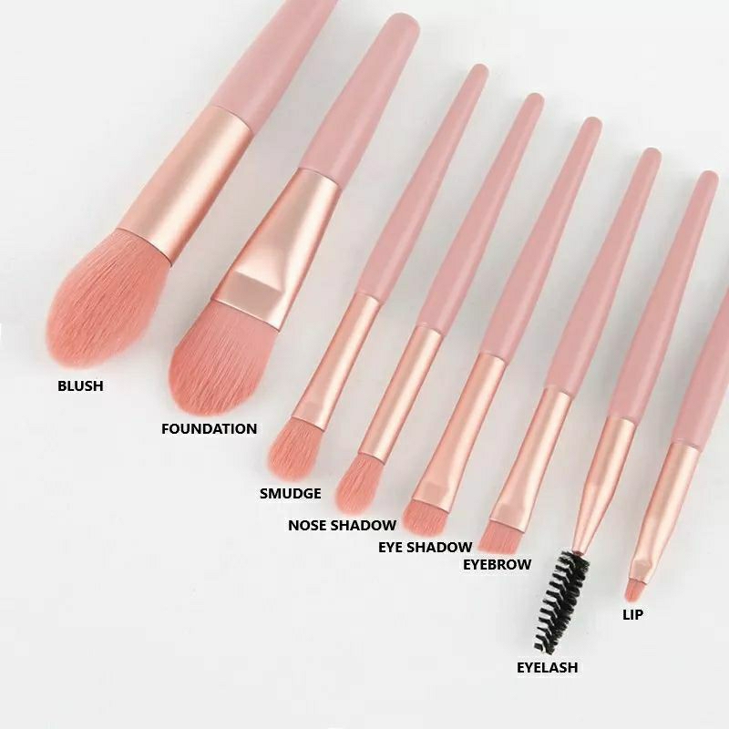 Detail Kuas Makeup - Set Kuas Make Up 8 pcs + Pouch Set Mini Travel Makeup Brush
