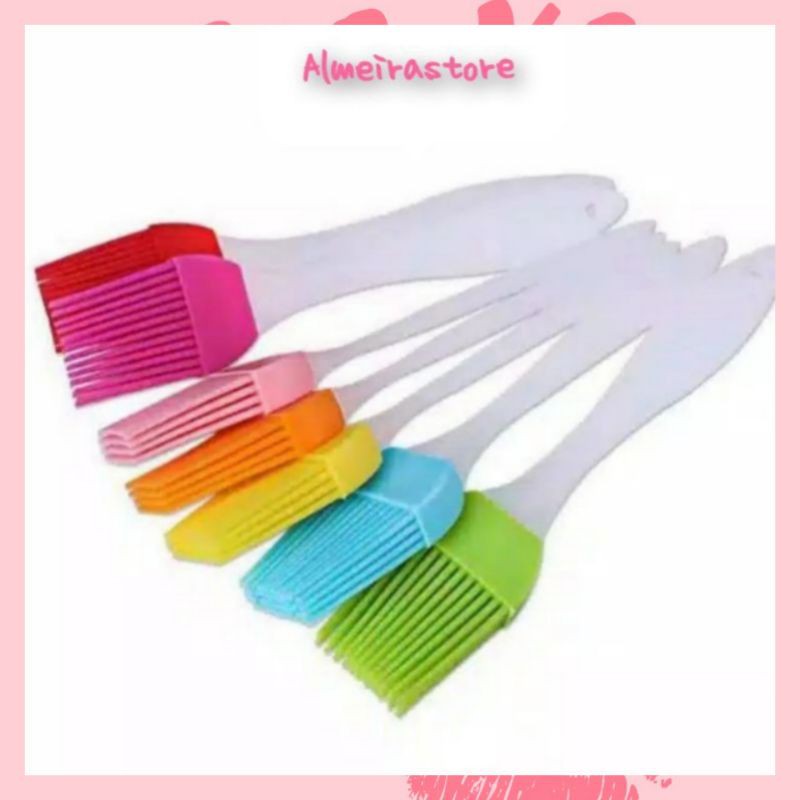 KUAS SILIKON OLES KUE ROTI / BARBEQUE BBQ / SILICONE BRUSH / OLESAN TELUR MINYAK Digunakan khusus untuk keperluan memasak dan menghias roti/ kue, yang hadir dalam warna-warni cemerlang. Dimensi : 1. Panjang Gagang : 11.5 cm 2. Lebar Kuas : 4 cm 3. Panjang Kuas : 4.5 cm