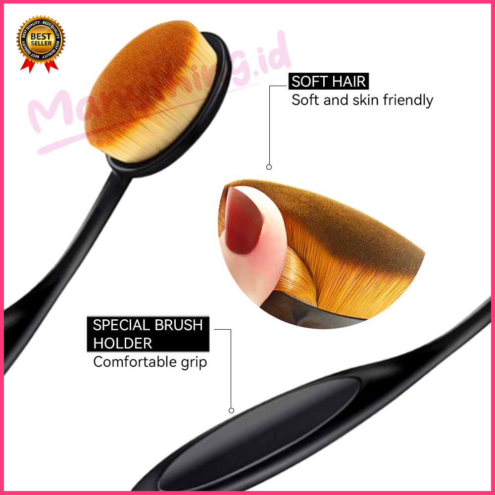 Detail Kuas Oval Foundation Brush Make Up Gagang Hitam Mini Murah foundation blending