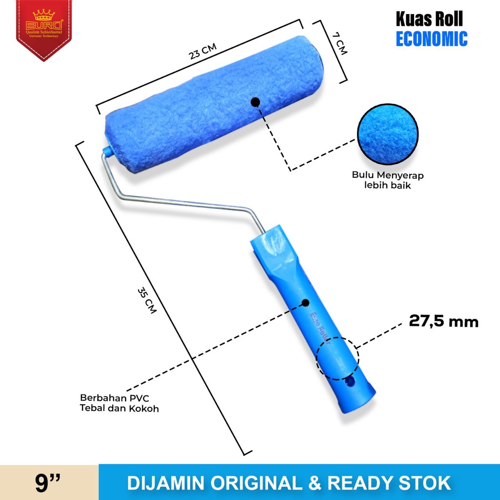 KUAS ROLL / PAINT ROLLER / KUAS ROLL CAT TEMBOK MEREK ECONOMIC 9 INCH Merk Euro Economic Kuas Roll dengan harga terjangkau dan tentunya berkualitas. cocok untuk digunakan cat tembok.