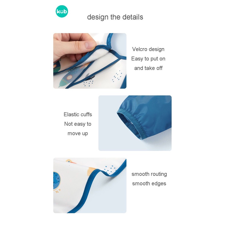 - Waterproof, oil proof & stain proof - Easy to wash and Dry (One Wipe & One rinse) - Flip the rice pocket untuk menampung makanan saat makan - Upgraded rice pocket lebih dekat dengan dagu bayi untuk lebih gampang menampung makanan