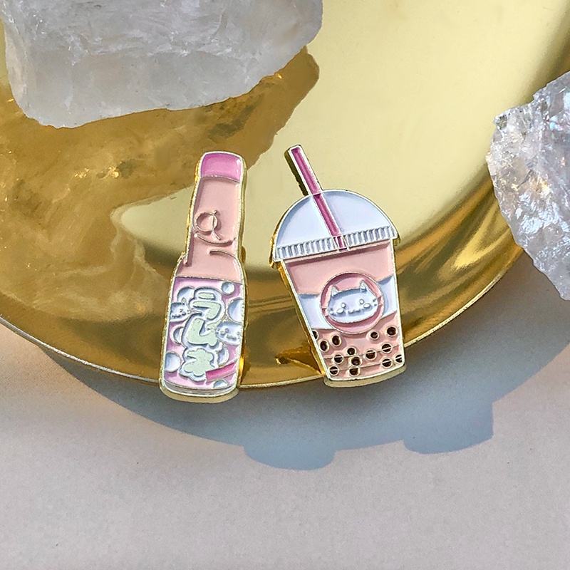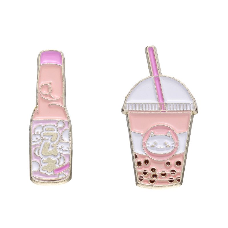 Detail Kucing Jus Susu Enamel Pin Lencana Logam Merah Muda Kartun Minuman Teh Bros Perhiasan Hadiah Teman Kerah Sweater Grosir Aksesoris