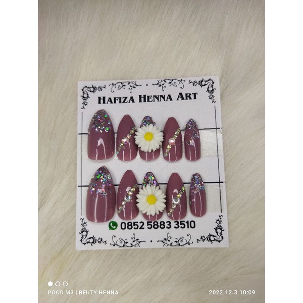 kuku palsu hiasan bunga daisy yg imutt dn cantiik sudah dapat sama lemn ya kk.. yuk bisa d co