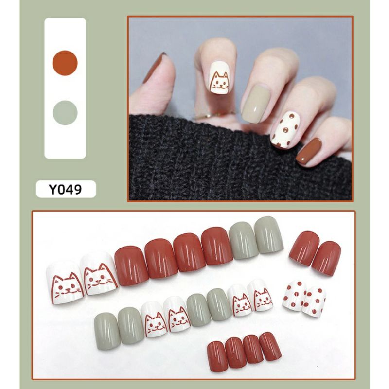 *Isi 24pcs. *Harga sudah termasuk lem kuku, ada di dalam kemasan, sudah dari Pabrik nya. *Lebih baik tambahkan lem kuku palsu cadangan pada keranjang belanjaanmu. *Karena lem kuku yang di dapat dalam kemasan (pabrik) hanya sedikit.