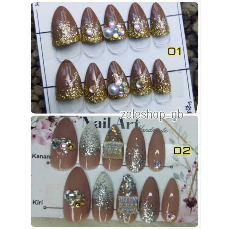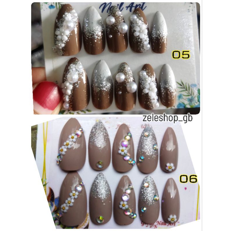 Detail KUKU PALSU HIAS NAIL ART COKLAT MUTIARA / NAIL ART