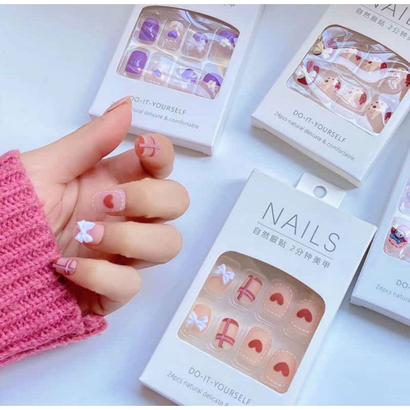 Dengan aneka corak menarik, mana sih corak yang paling mencerminkan kamu. Cek model yang ada.Dan tampil stylish sepanjang hari. Bisa dilakukan sendiri. Praktis. Kalau bosan bisa diganti setiap saat. Satu set ada 24 pcs. Q: Apakah sudah termasuk lem? A: Ya, setiap kotak stiker kuku memiliki lem. Q: Tahannya berapa lama? Bisakah itu digunakan ulang? Apakah ini tahan air? A: Umumnya dapat bertahan selama 3-4 hari, semakin sedikit kontak dengan air, semakin lama tahannya. Selama kuku palsu tidak rusak saat dilepas, bisa digunakan ulang. Ini bisa tahan air, tetapi tidak disarankan untuk berendam dalam air untuk waktu yang lama. Q: Bagaimana cara mengupasnya? A: Gunakan cairan pelepas kuku atau rendam dalam air hangat selama 15-20 menit sebelum melepasnya. Petunjuk Penggunaan: Siapkan kuku palsu. Cuci tangan Anda dan bersihkan kutek, lem kuku, atau kutek lain yang masih menempel pada kuku Anda. Jika kuku asli Anda sangat panjang, rapikan dan kikir ujungnya. Pilih kuku palsu dengan ukuran yang cocok. Jika ukurannya tidak sama dengan kuku Anda, efeknya akan terlihat kurang bagus. Setelah memilih, oleskan sedikit lem pada kuku palsu, lalu tempelkan langsung pada kuku (jangan terlalu banyak lem) Diamkan selama 30 detik. Ujung kuku palsu dapat dipotong sesuai ukuran (bentuk) yang diinginkan.
