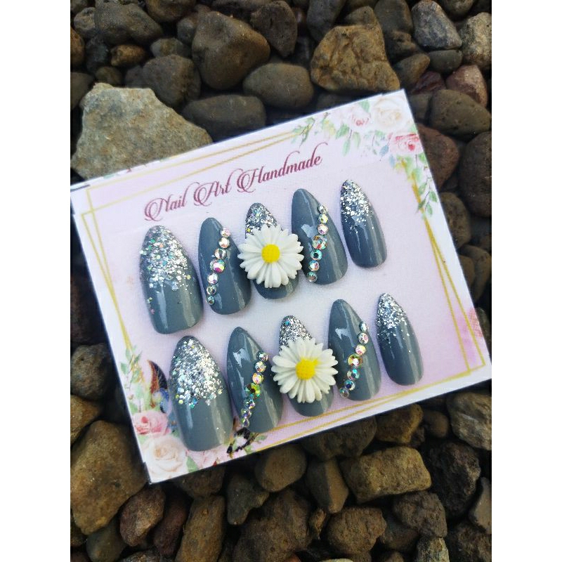 kukupalsu hiasan bunga daisy wrna silver isi 10 pcs sudah lengkap dgn lemnya free lem jell order minimal po 1 hari ya kak krna jika kosong masih kami garap dn menunggu penjemputan kurir setiap harinya☺️yuk bisa d co. kami produksi setiap hari. order banyak juga bisa pastinya🥰