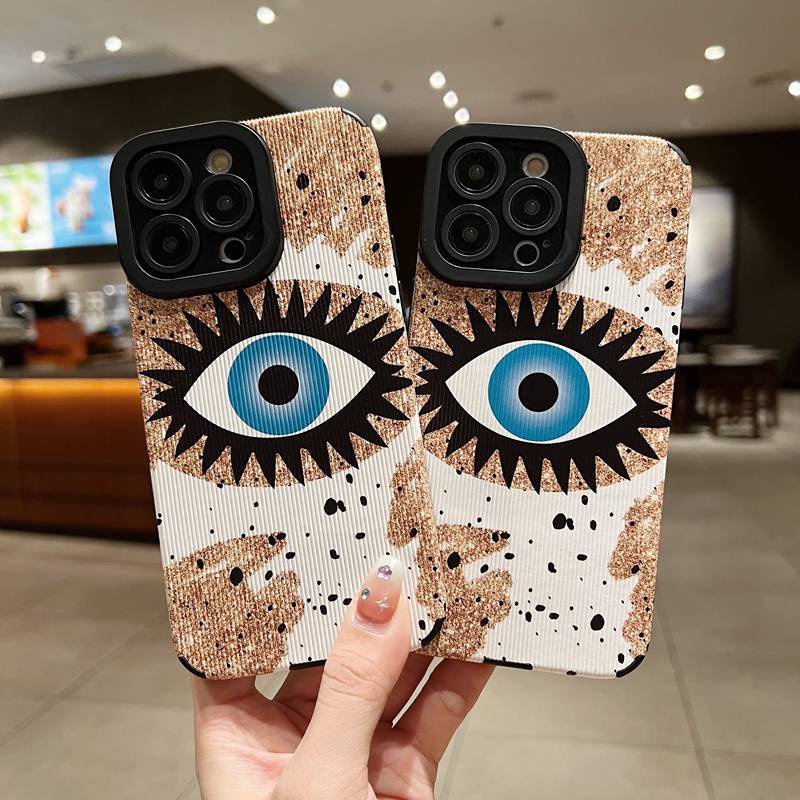 [Ready stock] Lamb Skin Pretty Blue Eye Soft Case IPhone 7 Plus 8 Plus X XS XR XS Max 11 13 12 14 PRO Max 14 Plus SE Phone Case for Women Girl