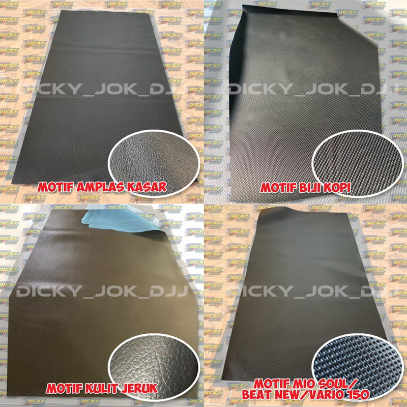 motif : AMPLAS KASAR kulit jok polos lembaran warna hitam bahan berkualitas, empuk, permukaan kasar sehingga tidak mudah bergeser saat diduduki/anti selip ketebalan ± 0.8 tersedia juga motif BIJI KOPI, KARBON, MIO SOUL, BIG DOT, KULIT JERUK, URAT HONDA, URAT MIO, JERUK CAMARO dan URAT VARIO 125