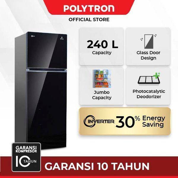 FITUR : - Tempered Glass Door - Borderless Round Edge Door - Jumbo Cabinet - Deodorizer - LED Lamp - Portable Ice Twist Tray - Bigger Bottle Pocket - Adjustable Tempered Glass Rack - Automatic Defrost System - inverter kompressor