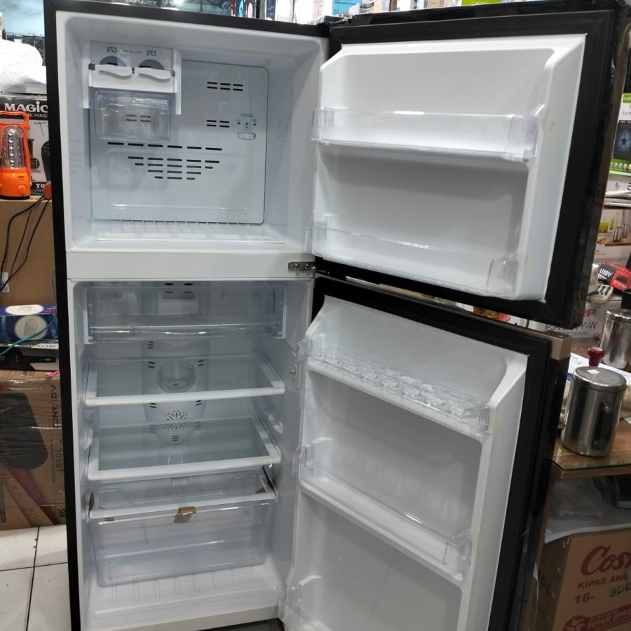 Fitur : • Kulkas 2 Pintu • Vivid color glass door • Kapasitas 240 Liter • Automatic defrost system • Tempered Glass Door • Jumbo Cabinet • Tempered Glass Rack • Adjustable Rack • Perfect Door Sealed • Deodorizer