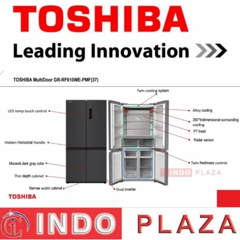 Detail KULKAS TOSHIBA SIDE BY SIDE 4 PINTU DUAL INVERTER GR-RF610WE 468 Liter