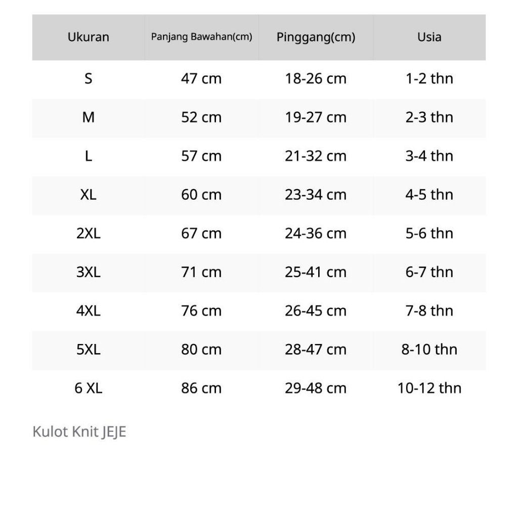 Kulot Anak KNIT JEJE SML XL 2XL 3XL 4Xl 5XL 6XL - Kulot Anak KNIT PREMIUM - Kulot Bayi - Kulot Anak Tanggung - OOTD Anak