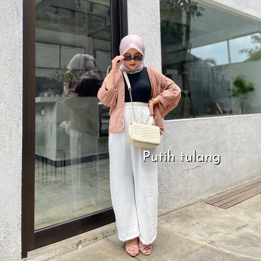 Pakaian Wanita > Celana Panjang & Legging > Kulot > Kulot Crinkle Premium Saku Putih Dewasa XL to XXL
