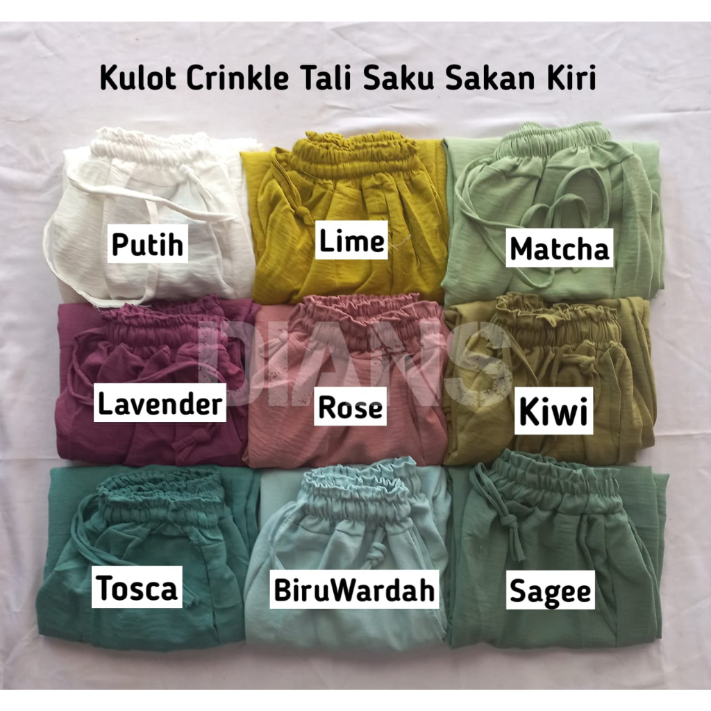 Kulot Crinkle Tali Premium Saku kanan Kiri Anti Kusut / Celana Cringkle Wanita Viral Termurah, insyaallah sudah kami kontrol dg baik jahitannya. Harga kami termurah se-INDONESIA karena kami produksi sendiri. Dijual lagi pasti untung. hehe...