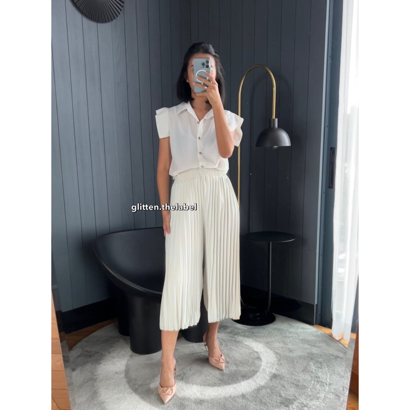 Plisket tegas dan tidak melintir Bukan barang abal-abal warna putih dah broken white ada menerawang, disarankan pakai dalaman warna senada ❗️TERDAPAT KARET KECIL WARNA HITAM/PUTIH DIDEKAT PINGGANG BUKAN CACAT PRODUKSI, MELAINKAN SENGAJA DIPASANG UNTUK GANTUNG MERK UNTUK DIJUAL KEMBALI. Silahkan digunting kalau memang tidak perlu, tidak akan merusak rok nya❗️
