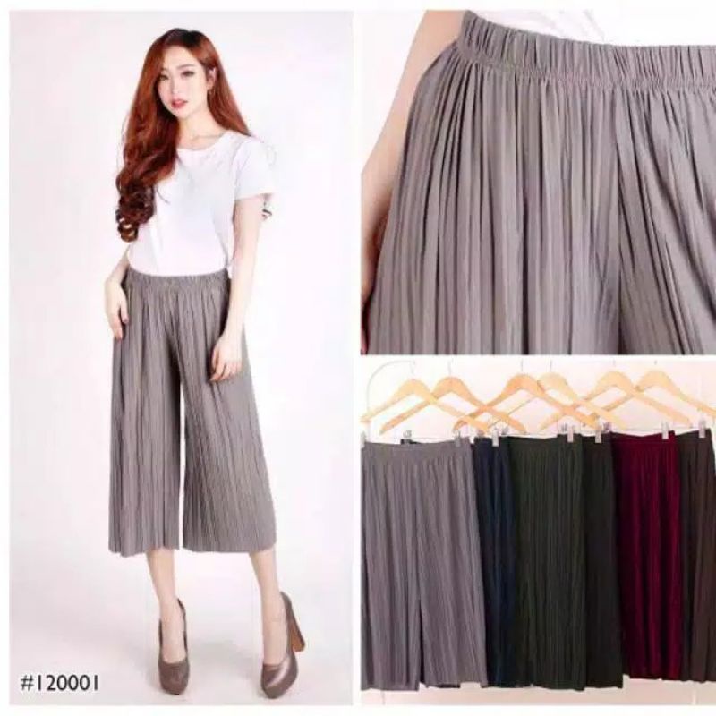 Detail Kulot plisket pendek 7/8 celana wanita rempel pliskit pendek Jumbo