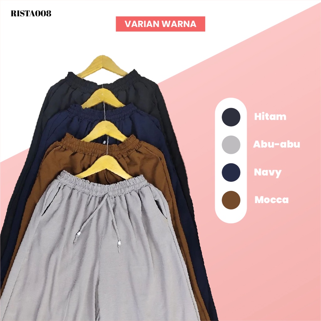 Kulot Umbrella Celana kulot merupakan salah satu celana yang nyaman digunakan untuk harian, celana ini cocok sekali untuk kamu yang ingin tampil lebih modis dengan menggunakan atasan apa saja. Yuk pilih warna dan ukuran yang pas buat kamu di rista008!