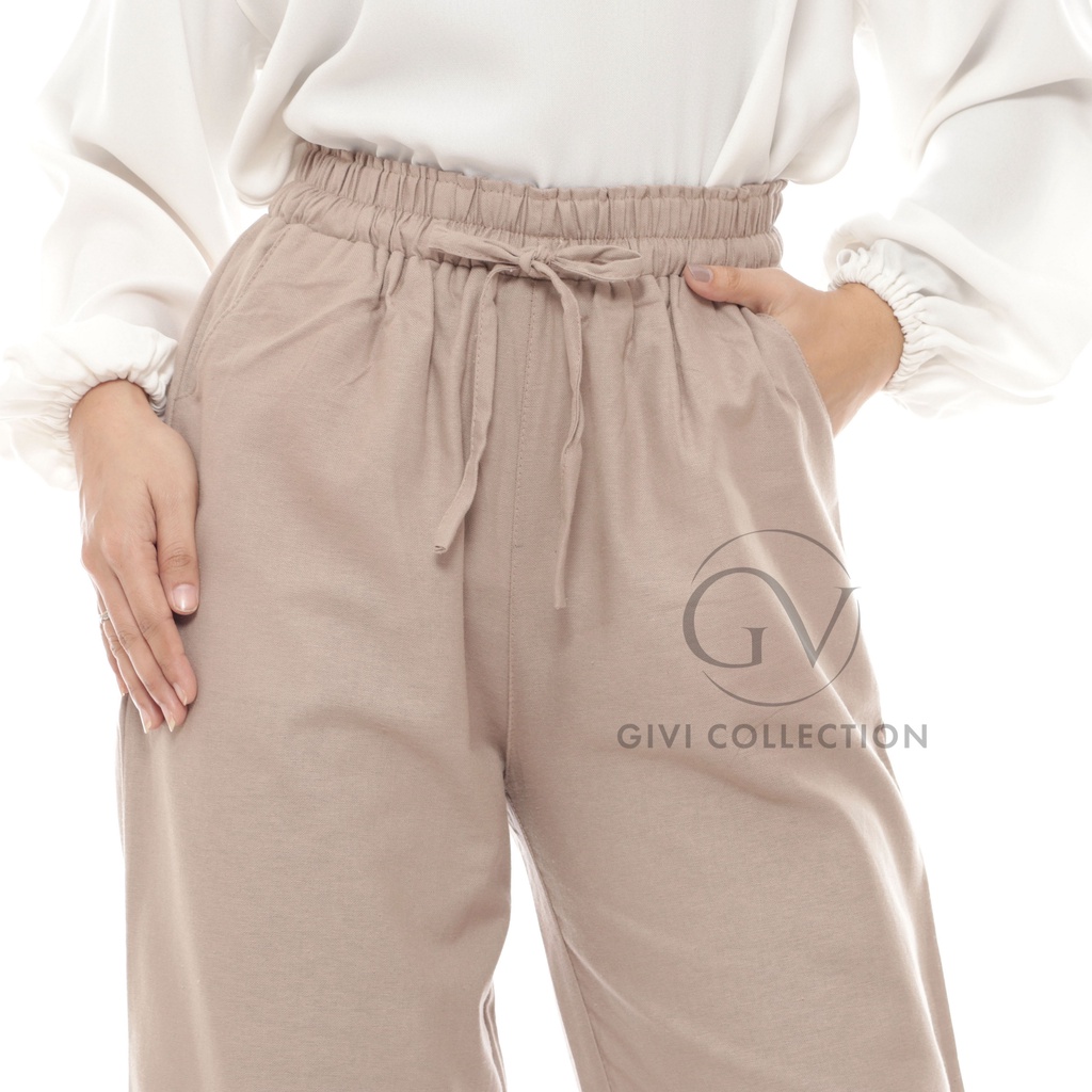 -celana kulot widi pants -bahan linen rami premium grade A -Bahan terbaik unik berserat ... -Saku kanan kiri -aksen tali serut -FULL karet