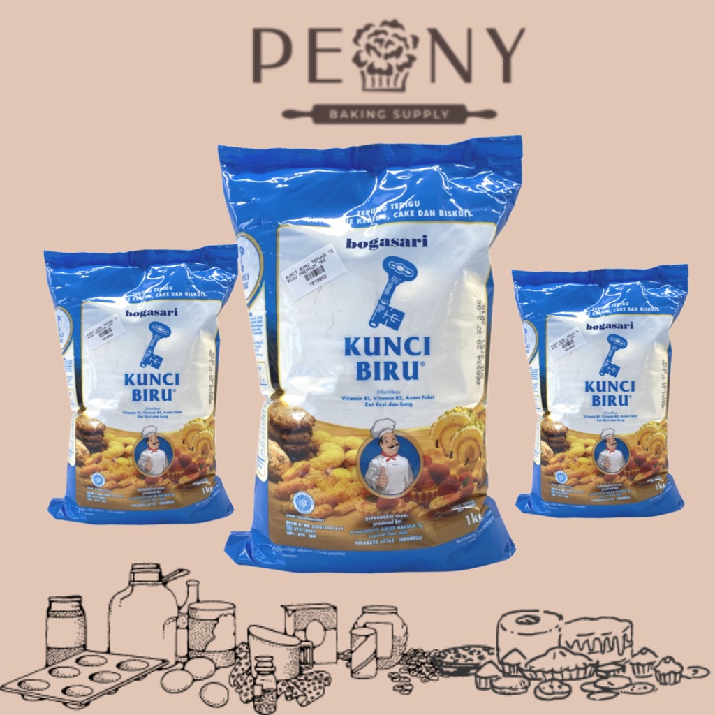 Tepung Terigu Kunci Biru Premium 1kg Bogasari Kue