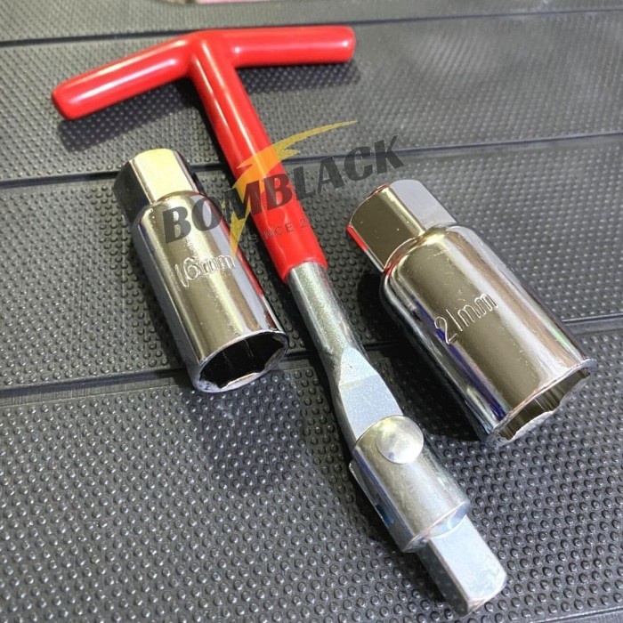 - DESKRIPSI PRODUK : * Kunci Busi Flexibel T-Type dengan 2 mata Socket 16 mm & 21mm. * Tahan lama dan presisi dibuat dengan material chrome vanadium bermutu tinggi. * Dilengkapi dengan leher flexibel sehingga mudah untuk menjangkau tempat yang sulit dijangkau. * Sangat cocok untuk kebutuhan montir, bengkel mobil & motor, maupun untuk perawatan kendaraan pribadi di rumah Anda.