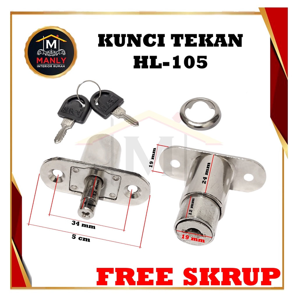 * Kunci HL 105 Diameter Silinder : 19 mm Material Silinder : Zinc Alloy Material Kerangka : Zinc Alloy
