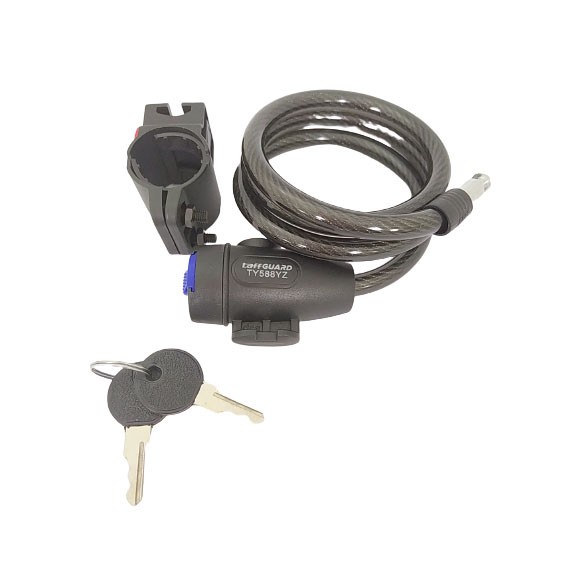 Alat ini adalah gembok untuk mengunci ban sepeda agar tidak dapat digerakkan. Sangat berguna untuk melindungi sepeda dari pencurian terutama jika Anda ingin meninggalkan sepeda diluar. Bahan pengunci terbuat dari bahan PVC yang keras sehingga tidak mudah dibuka paksa. Untuk membuka gembok sepeda dibutuhkan kunci sehingga tidak semua orang dapat membuka gembok ini