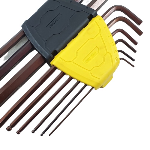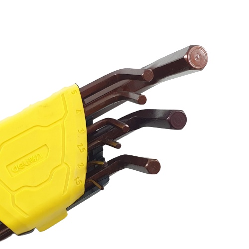 Kunci L Ball Point Hex Merk: Deli 9pcs: 1.5mm 2mm 2.5mm 3mm 4mm 5mm 6mm 8mm 10mm Bahan CR-V