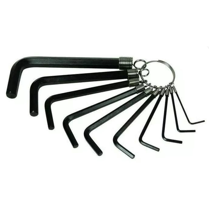 Perkakas yang wajib Anda miliki di tool box penyimpanan Anda! Kunci L 10 Set pendek yang memiliki 10 ukuran masing masing, diantaranya: * 1.5 mm * 2.00 mm * 2.55 mm * 3.0 mm * 3.5 mm * 4.0 mm * 5.0 mm * 6.00 mm * 8.00 mm * 10 mm Kunci L alat yang sangat berguna untuk pekerjaan pertukangan, perbengkelan, industri ringan bahkan rumah tangga. Dilapisi CRV (Chrome Vanadium) membuat alat ini kokoh, tahan lama, serta mudah digunakan. Keunggulan lain yaitu didesain dengan ukuran pendek dan mini bisa menjadikannya sebagai gantungan kunci untuk memudahkan Anda membawanya kemana-mana, disertai dengan penyimpanan menggunakan ring bulat yang membuat kunci L tidak mudah hilang.